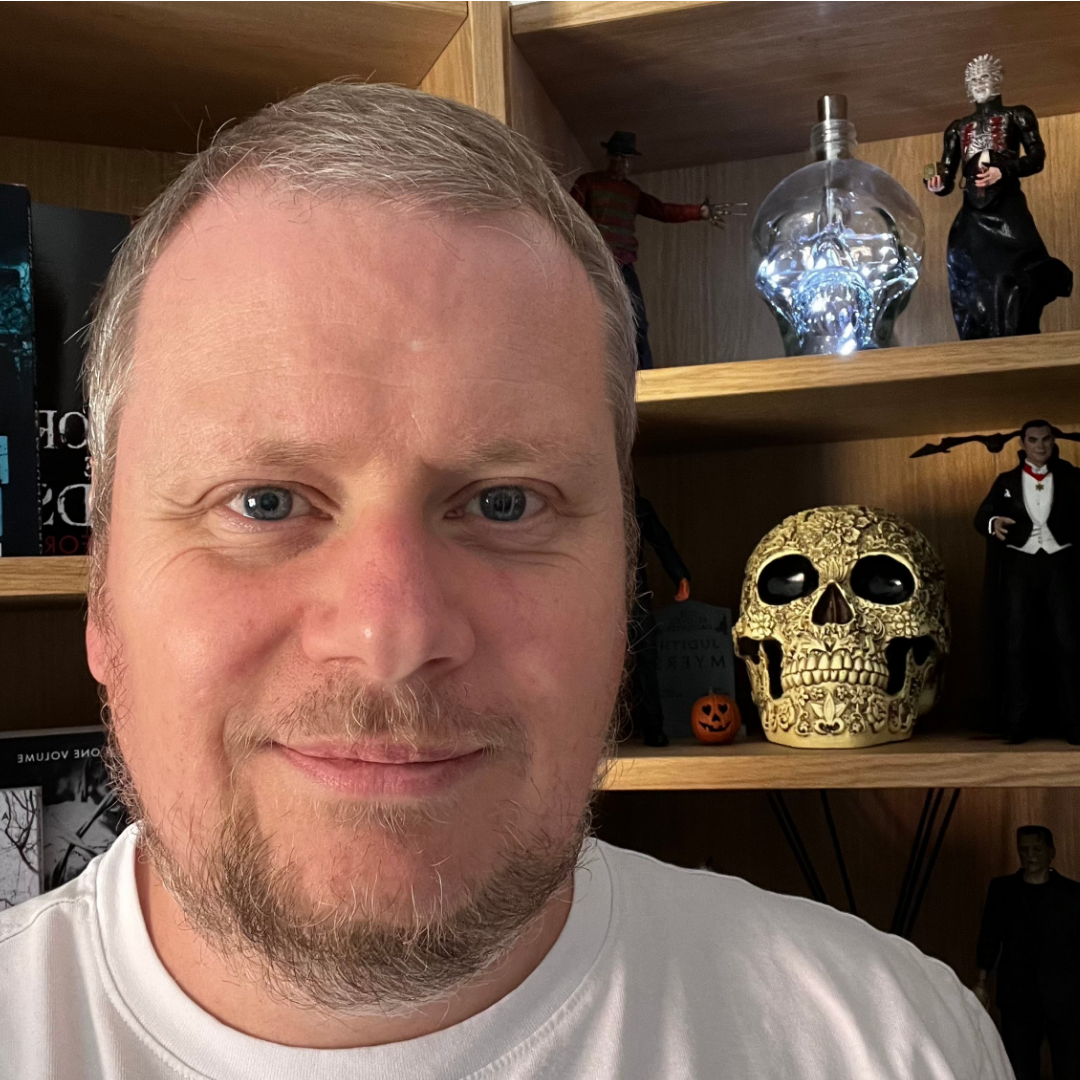 He is a lifelong horror fan, much to the dismay of his amazing wife Michelle.